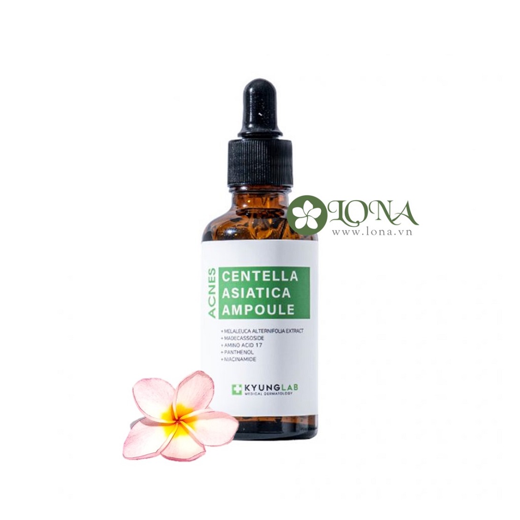 Serum Acnes Centella Asiatica Ampoule Kyung Lab Trong các lọ serum rau má, Centella Asiatica là nguồn chứa nhiều triterpenoid quan trọng như asiaticoside, madecassoside, asiatic acidmadecassic acid. Trên thị trường, một số sản phẩm dùng chiết xuất toàn phần của rau má còn nhiều sản phẩm khác chọn TECA (Titrated Extract of Centella Asiatica) — dạng chiết chuẩn hóa giàu các hoạt chất này. Việc chuẩn hóa giúp ổn định hàm lượng giữa các lô sản xuất, giảm biến thiên do mùa vụ hay phương pháp chiết, từ đó tăng độ tin cậy của serum Cica khi sử dụng. Về cơ chế sinh học, nhóm triterpenoid trong rau má được ghi nhận có các tác dụng: