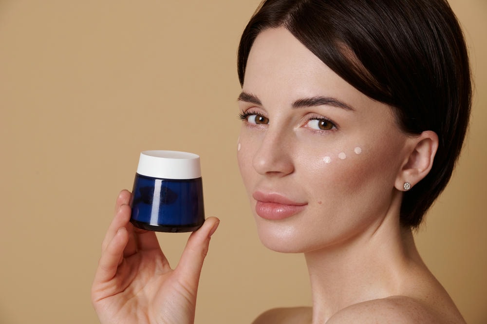 top kem trị nám tàn nhang tốt nhất. Cận cảnh người phụ nữ vui vẻ với các vấn đề về da thoa kem dưỡng da lên mặt cô lập trên nền ngọc lam Chiến lược điều trị là nền tảng để thuốc trị nám phát huy tối đa. Một phác đồ hiệu quả thường được thiết kế theo từng pha, có theo dõi và điều chỉnh linh hoạt.